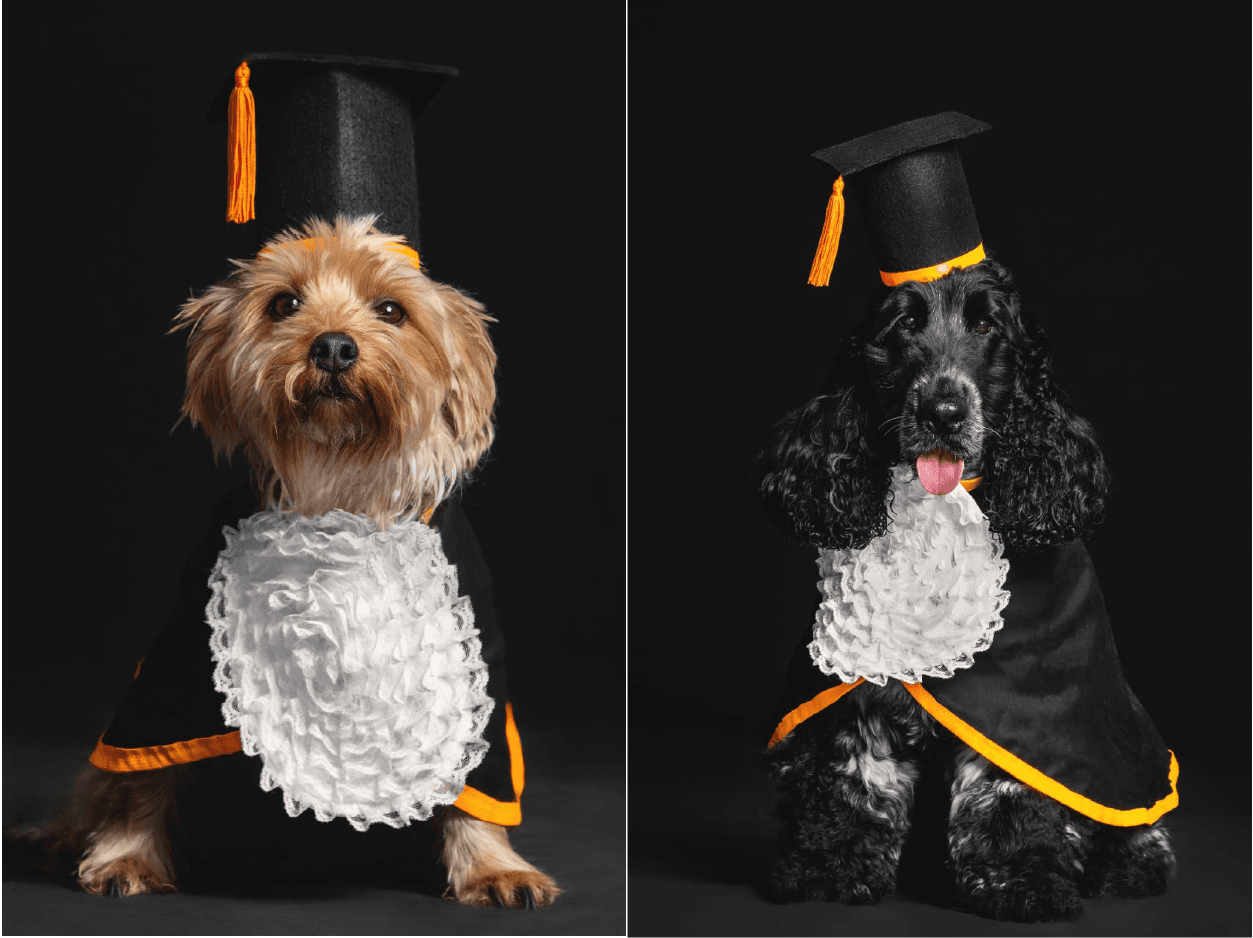 A iniciativa transformou o fim do ano em um momento especial tanto para os peludos quanto para seus tutores. Cada cachorro participou de um ensaio fotográfico profissional, vestindo a tradicional beca preta com detalhes em tons de laranja e uma delicada gola branca rendada. O capelo com borla completava o look de formando, e o resultado não poderia ser mais encantador.